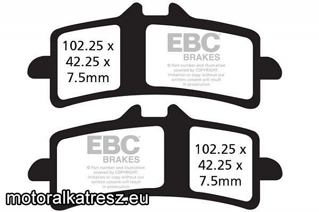 Fékbetéteinkhez részletes magyarázat a tudásbázis fenti menüsorban található! Az ár egy féknyeregbe való fékbetétszetthez tartozik, tehát ha elöl dupla tárcsás a motor, akkor két szettet kell rendelni. | Ez az EBC legnagyobb teljesítménnyel rendelkező fékbetétje, ami utcán is használható. Pályamotorozáshoz fejlesztették, ám hidegen is kiválóan működik. Rendkívül sportos felhasználóknak javasolt, így akik nem utánfutóval viszik motorjukat a pályáig, azok igényét elégíti ki. FIGYELEM! A csomag tartalma 1 féknyeregbe való fékbetétszett. Ha dupla tárcsás a fékrendszer, akkor ebből a termékből (vagy jobbos-balos esetén a másikból összesen) 2 darabot kell rendelni. Gyártó: | EBC | Felhasználási terület: | Sport-Pálya | Megvásárolom: | | |