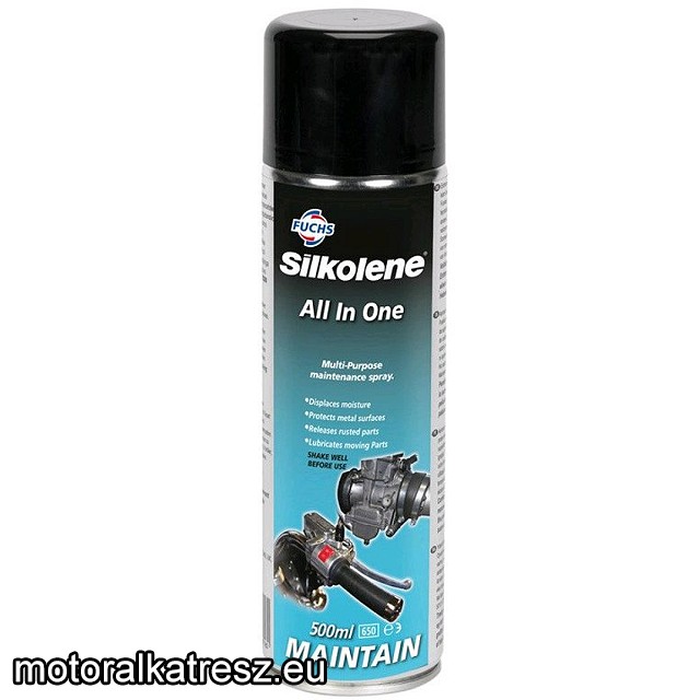 A SILKOLENE ALL IN ONE SPRAY prémium teljesítményű, többcélú behatoló olaj és nedvességkiszorító spray, amely számos felhasználási területen alkalmazható, beleértve a tisztítást, védelmet és kenést. | Előnyök -Ken és behatol -Kiváló vízkiszorító tulajdonság -Vékony korrózióvédő filmréteget képez -Ne használja nyílt láng vagy izzó felület közelében, és kövesse a címkén található biztonsági előírásokat Figyelem: egyes gumi- és műanyag alkatrészeket károsíthat. Gyártó: | FUCHS SILKOLENE | Megvásárolom: | | |