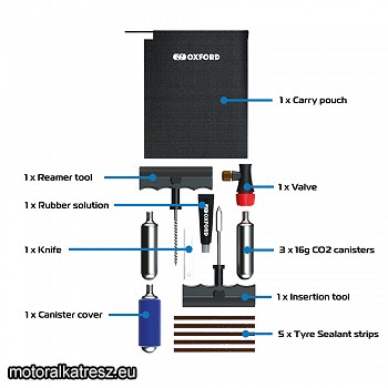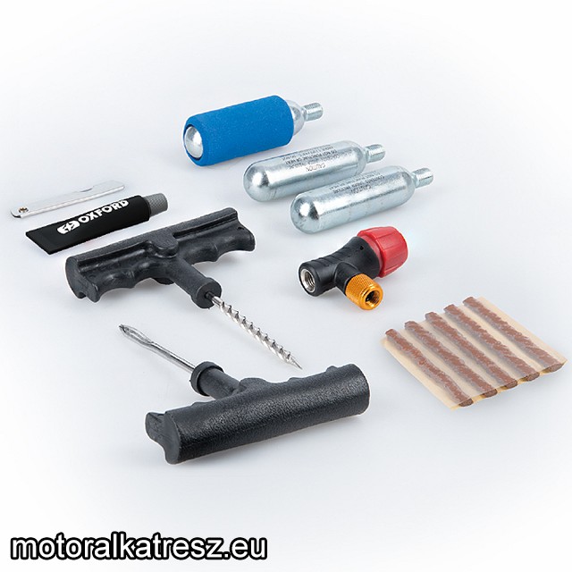 Táskában, a tömlő nélküli gumik végleges helyszíni javítására. Ha a világ végén ér a defekt, nem ha van nálad egy ilyen! Szerszámok, kukacok, ragasztó és felfújópatronok, tehát komplett csomag. Minőségi Oxford gyártmány. | Gyártó: | Oxford | Megvásárolom: | | |