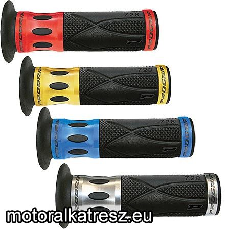 A markolatok ára egy párra vagyis 2db-ra értendő, ez a csomag tartalma! | Univerzális gumi markolat 728 kék. Minden motorkerékpárra feltehető, szabvány 22/25-ös átmérővel. Puha fogású, az időjárásnak rendkívül jól ellenáll. Lyukas végű kivitel. 122mm hosszú. Gyártó: | PROGRIP | Megvásárolom: | | |