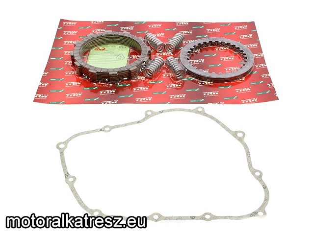A Szett tartalmazza a kopó lamellákat, a fém lamellákat , a rugókat és a kuplung dekni tömítést. | A hozzárendelteken kívül az alábbi típusokhoz jó: Honda FMX 650 2005-2008 Honda FX 650 Vigor 1990-2000 Honda SLR 650 1988-1996 Gyártó: | TRW Lucas | Megvásárolom: | | |
